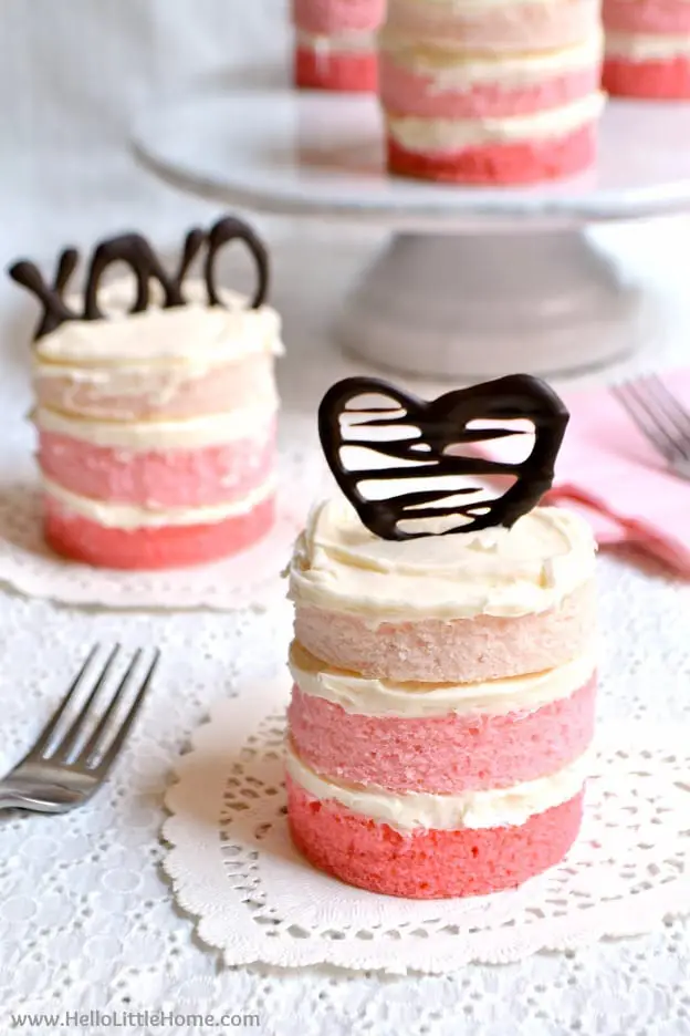 A real showstopper on a budget! These absolutely gorgeous mini ombre cakes were made entirely with ingredients from the 99c store. Perfect cakes for a birthday, Valentine’s day or any kind of party!