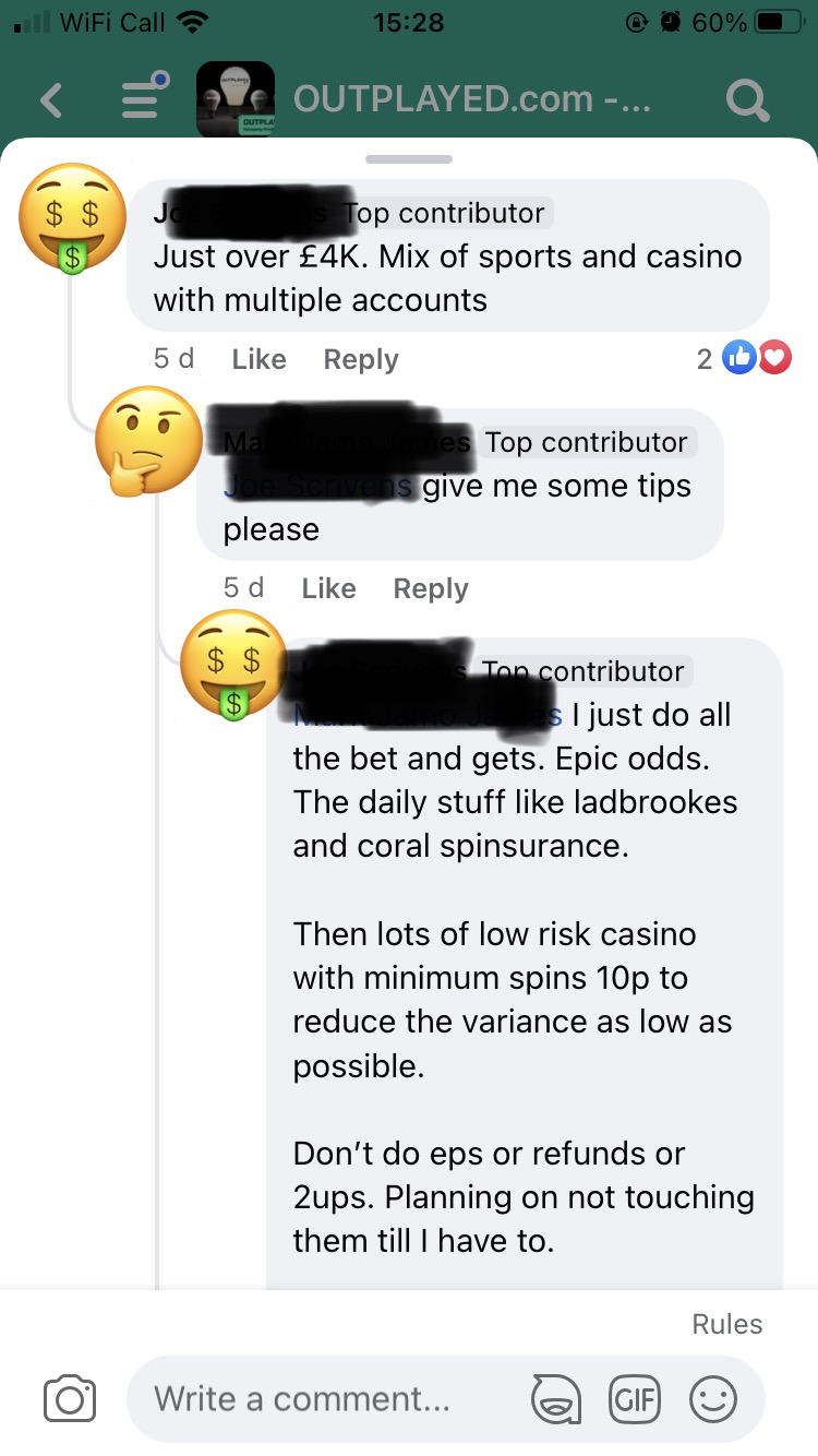 You will definitely want to be part of a matched betting service such as Outplayed. Not only will the tools, calculators and promotion lists save you time, but the community is invaluable too. The private forum and Facebook group is where you’ll be the first to hear about new tricks, find out which bookies are getting a little gub-happy and generally stay in the loop about any developments in the world of matched betting.