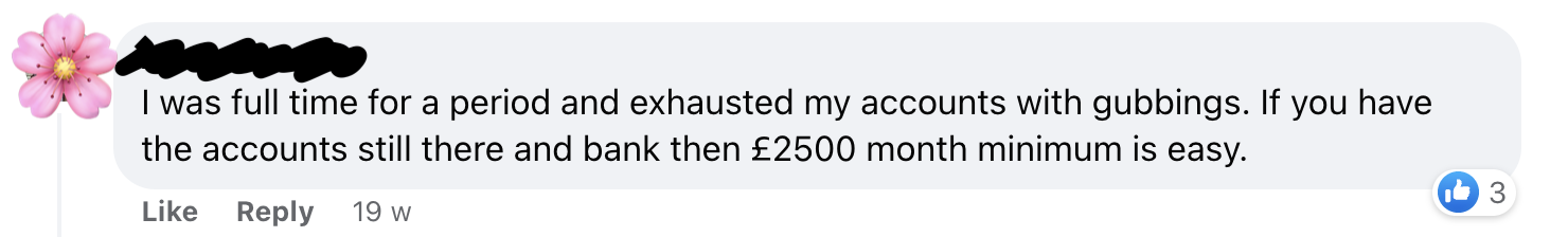Some people are making more. I lurk in the Outplayed.com forums and official Facebook group. Both have regular discussions/threads on monthly earnings, and there are many folks who claim to do matched betting for a living. There are several people who report earnings of anywhere from £2000-£4000+ per month (of course, these reports are not verified).