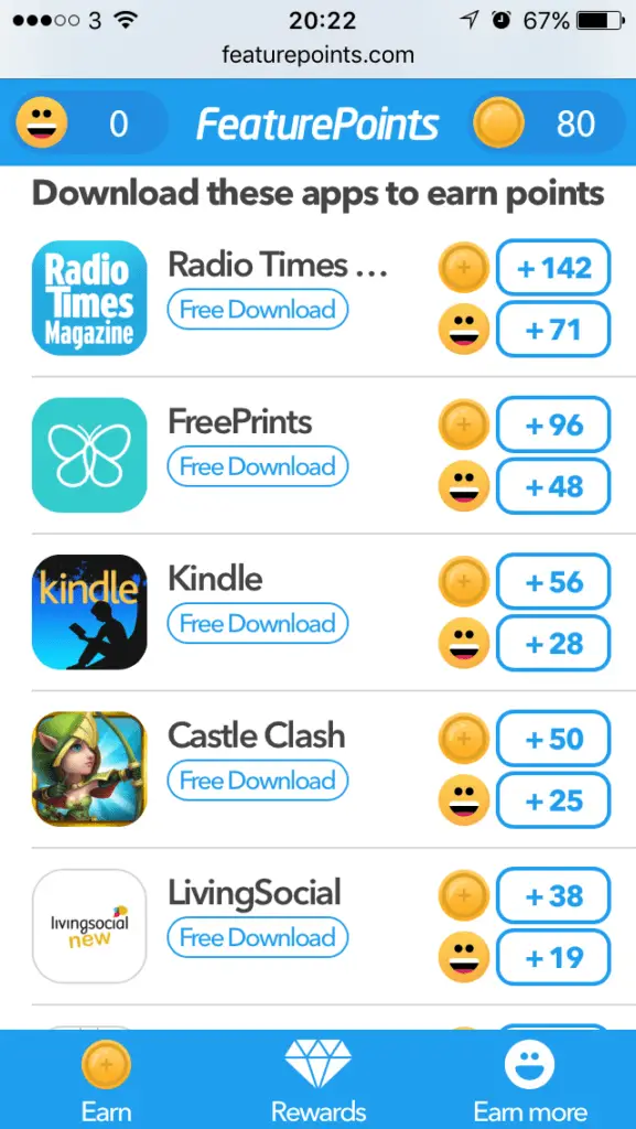 FeaturePoints also gives you the option to complete surveys, which can apparently earn you an extra 200 points each. I gave two or three surveys a go, but got the dreaded screen out after answering several questions each time. I just can’t be bothered with this stuff so I haven’t tried the surveys again since. But, if you enjoy doing surveys this could be a nice extra boost for you.