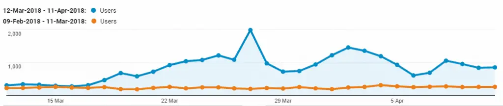 According to Google analytics, in the month before I started this strategy (12 March), I had 10,876 page views. In the first one month period after starting the strategy, I got 38,128 page views.