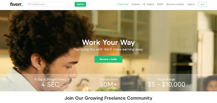 There’s no fee to sign up to sell on Fiverr, but they do take a hefty 20% cut of your earnings.