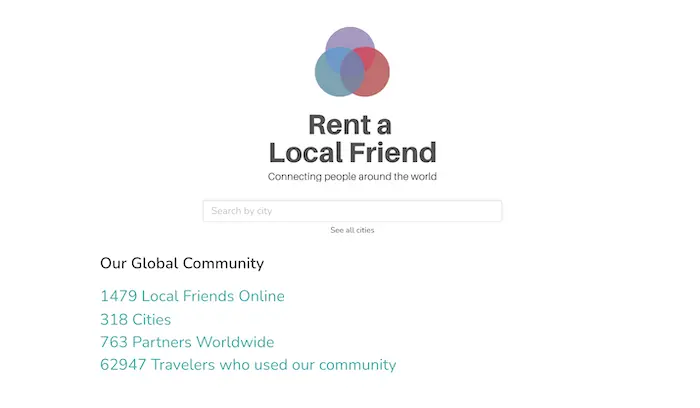 As you might guess from the name, RentALocalFriend.com is aimed at people who want to make contacts in specific locations around the globe.