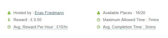 I also like that Prolific are very transparent. When each survey appears on the dashboard, you will see the fee, the average time taken to complete, the maximum time allowed, and the average estimated hourly rate (calculated from the average completion time). You will see that the estimated hourly rate is always above £5, and often closer to £10.