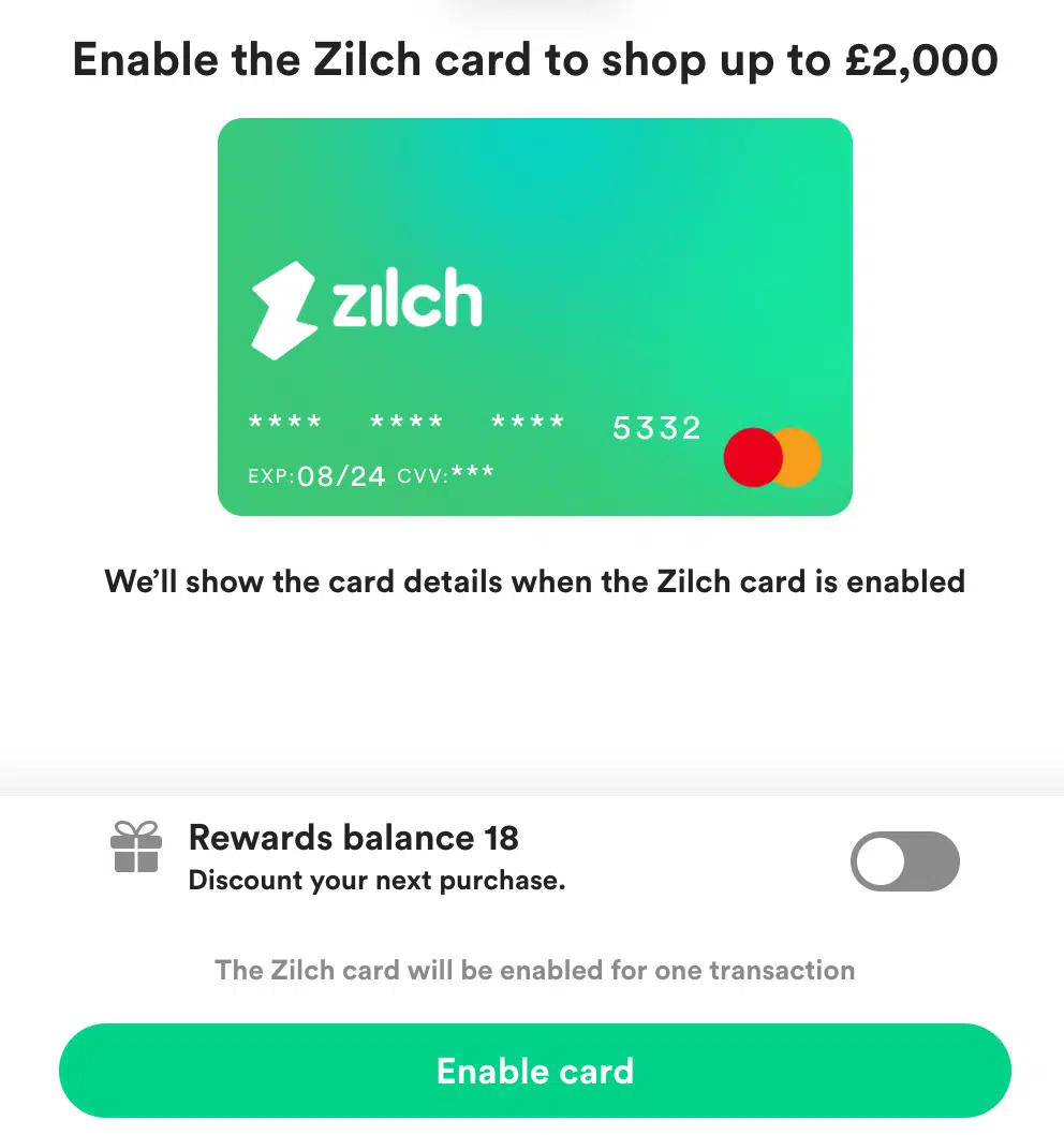 Zilch are currently offering 500 points, equivalent to £5 cash, for all new users when you make your first Tap & Pay (contactless) payment.